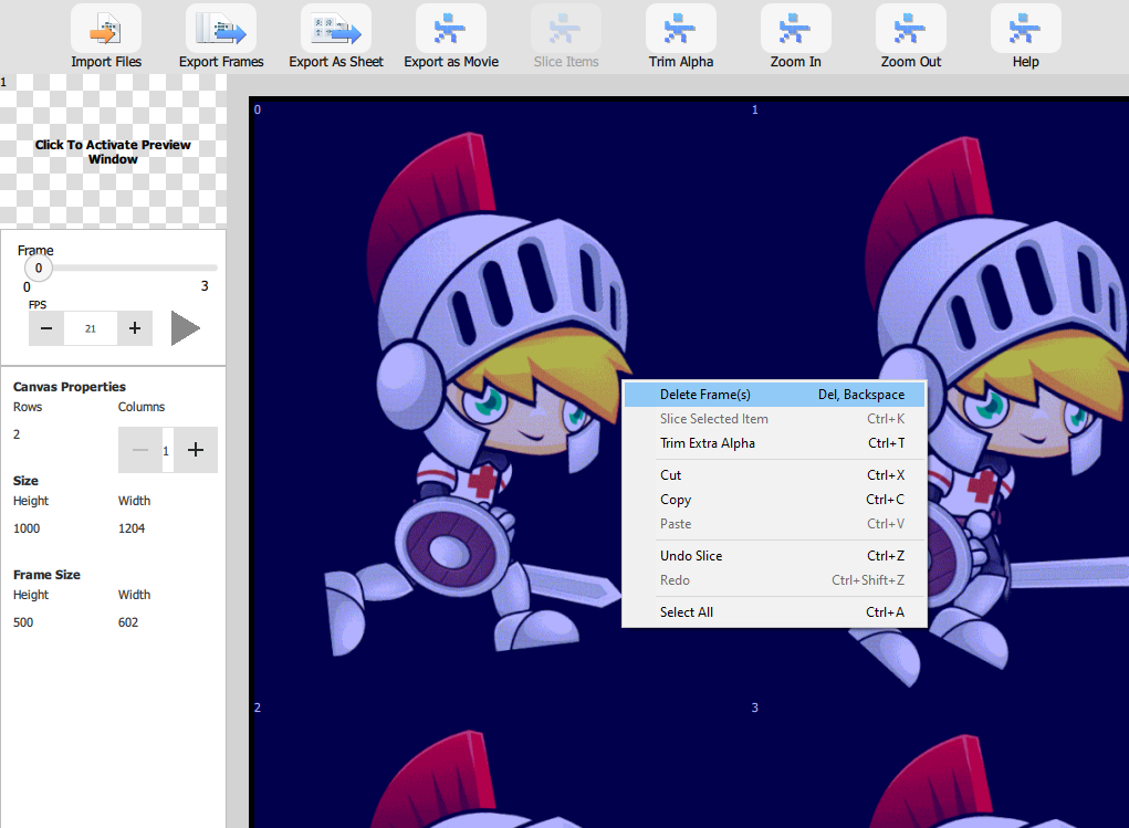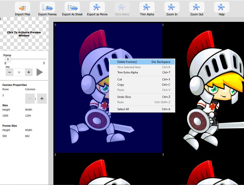 Right-Click the frame you want to delete. Click "Delete Frame(s)."